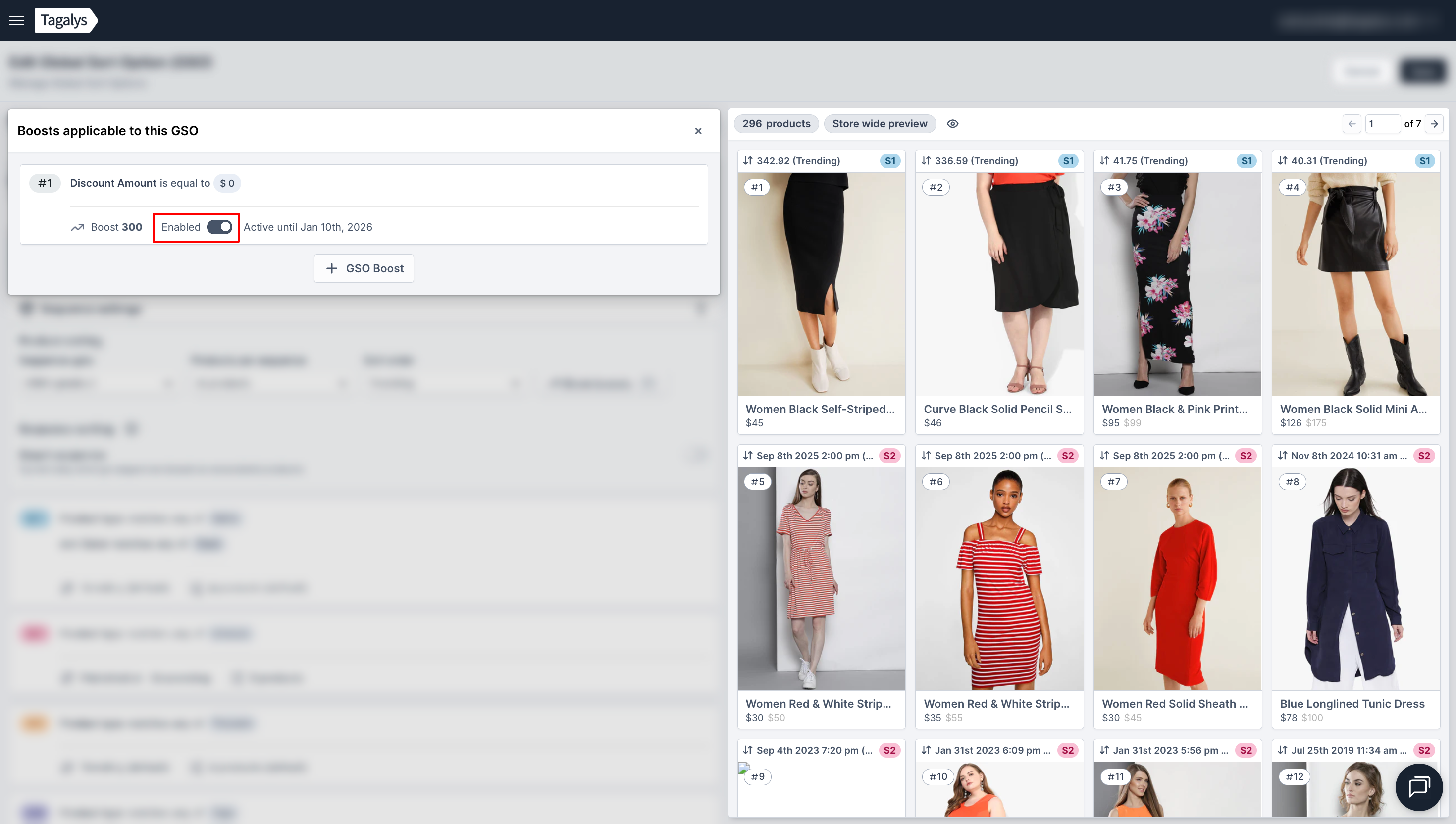 - To promote the products, increase the value of the GSO boost. For e.g., we are giving this GSO a boost of 300 for products that are being sold at full price.