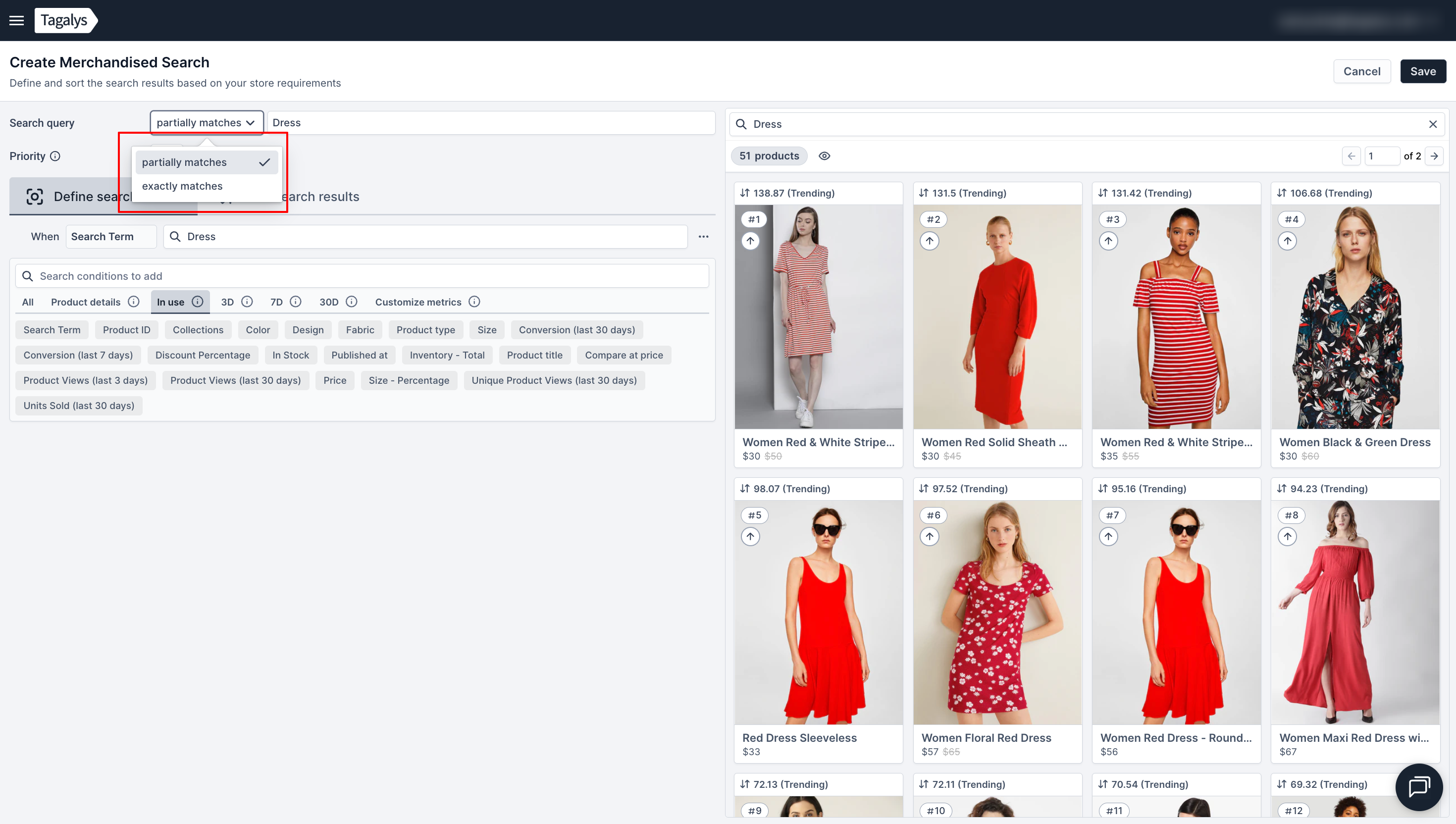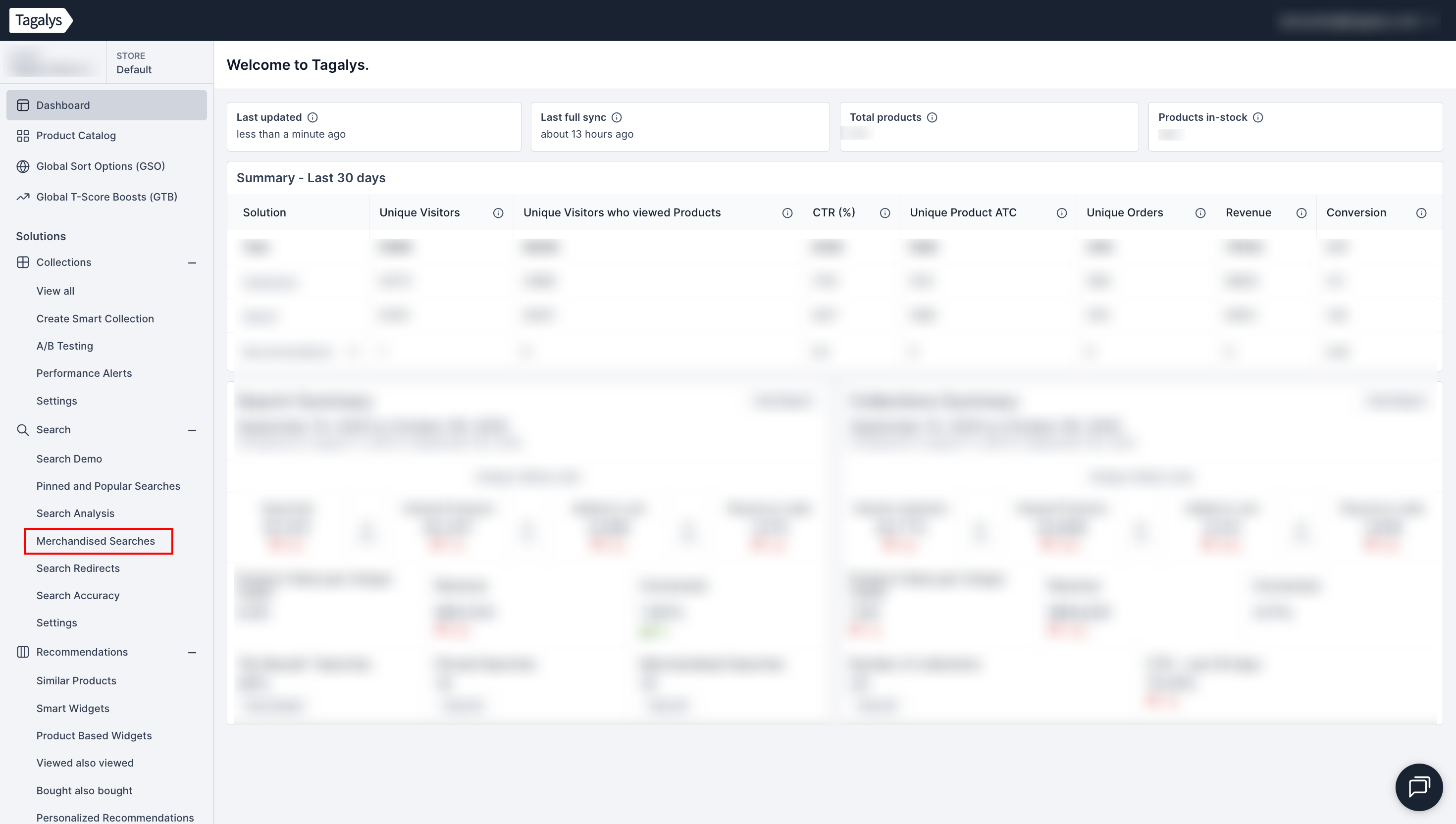 - Login to your Tagalys dashboard and click on 'Merchandised Search'.