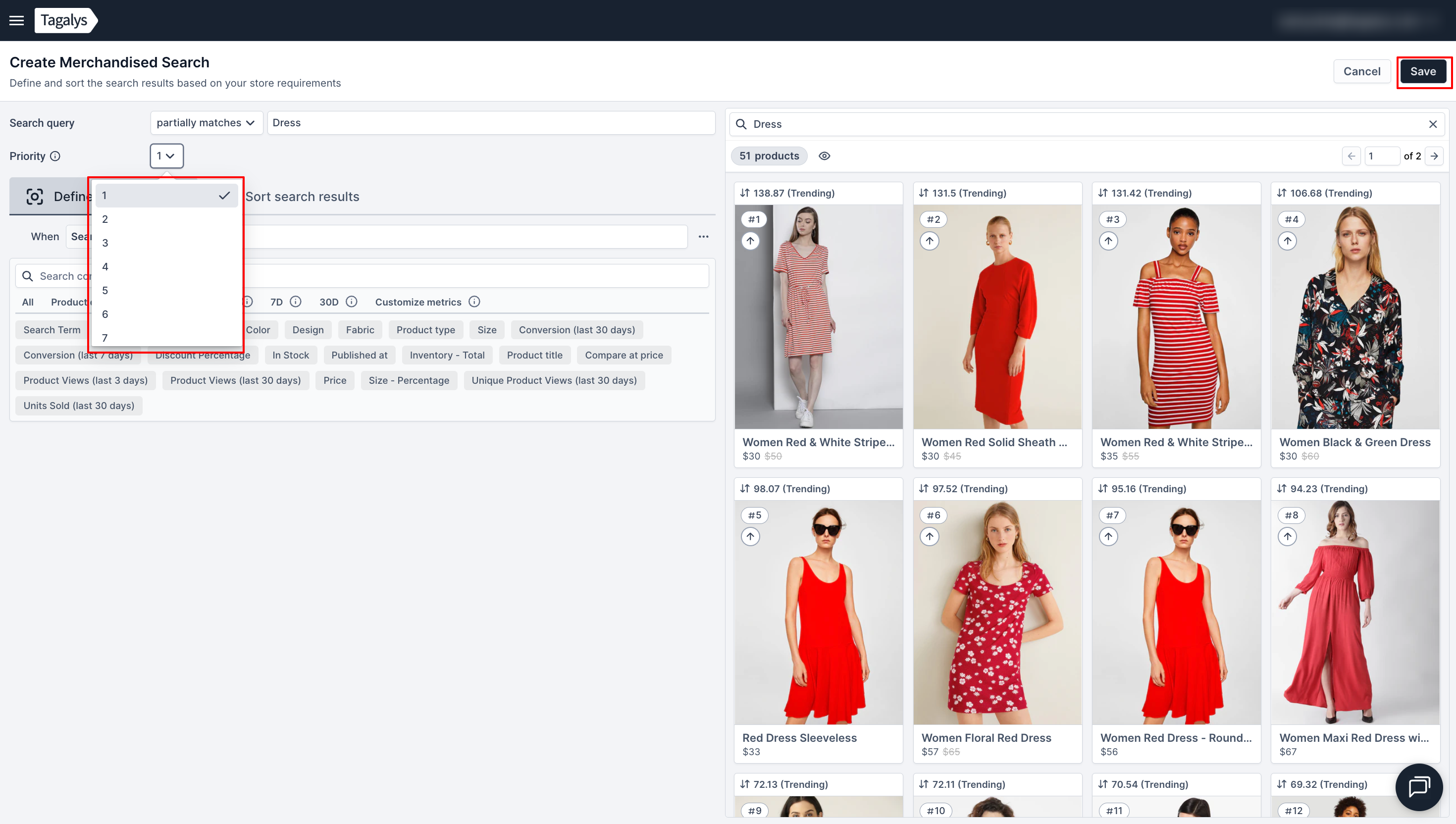 - Set the 'Priority' of this 'Merchandised Search' and Save