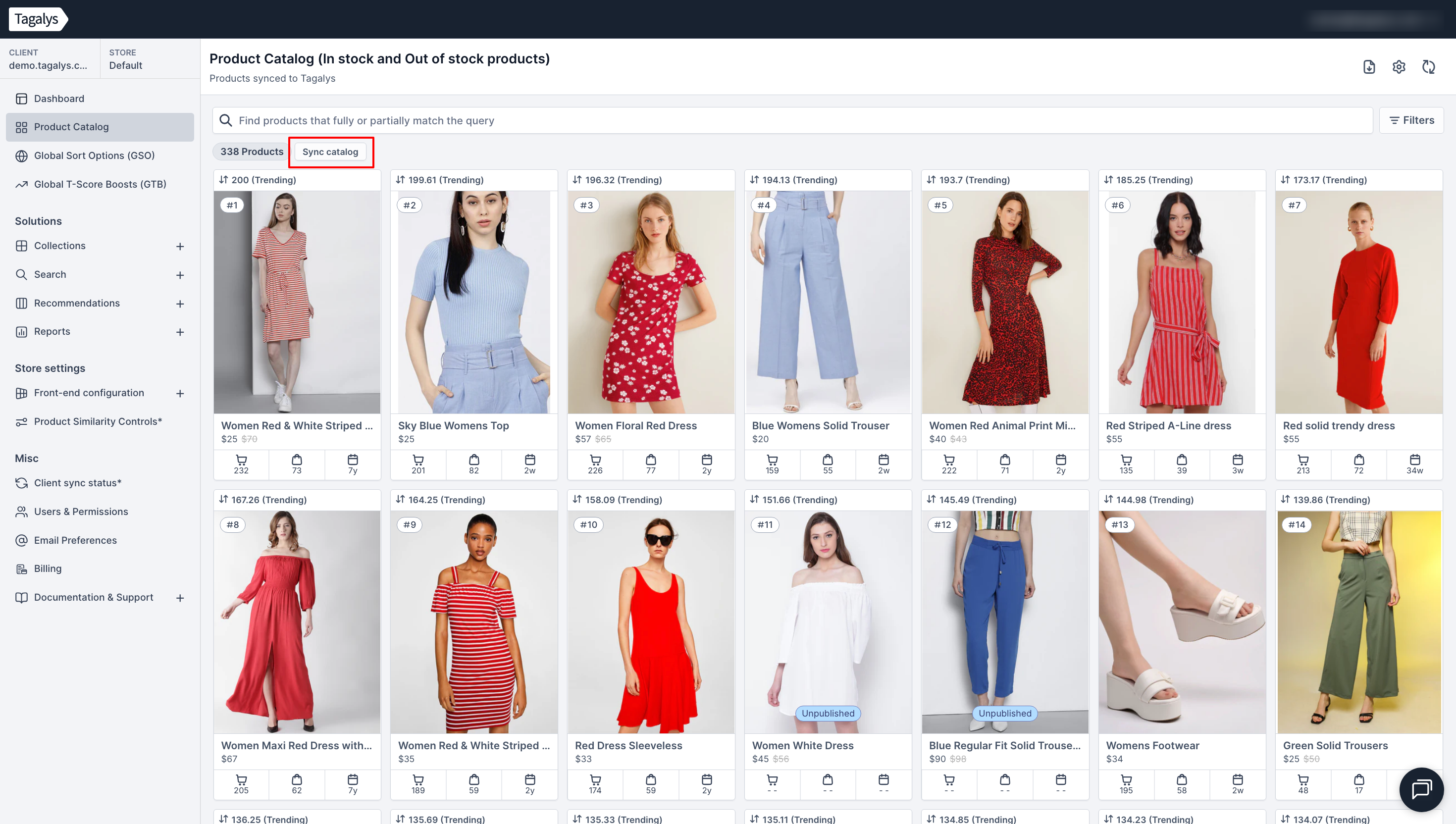 Any changes you make on the product from the eCommerce platform can be synced to Tagalys directly from the Tagalys Dashboard.
