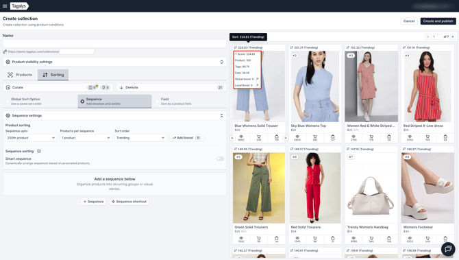 Enabling dynamic intelligent sorting across 'Categories,' 'Collections,' and 'Search' results to improve visitor engagement